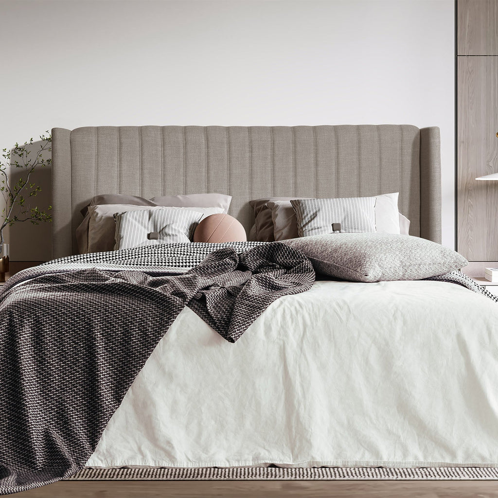 Cabeceira King Estofada Reid Canelada 208 cm - Linho Mescla Fendi