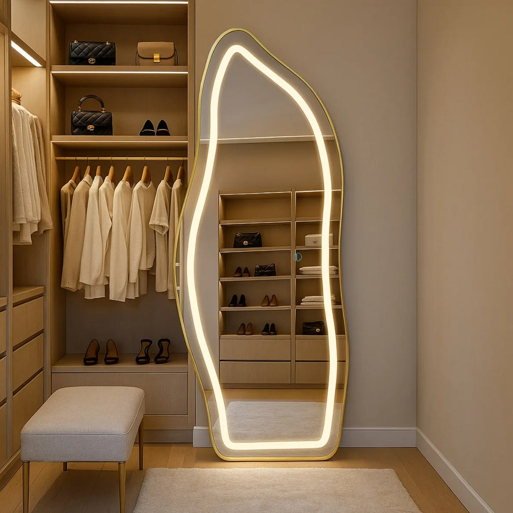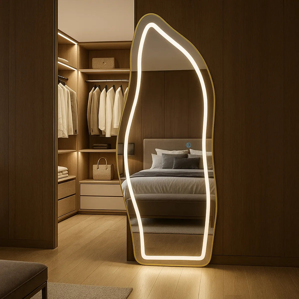 Espelho Organico Halo LED 170 – 3 Intensidades - 170X70 com Suporte de Chão Jateado