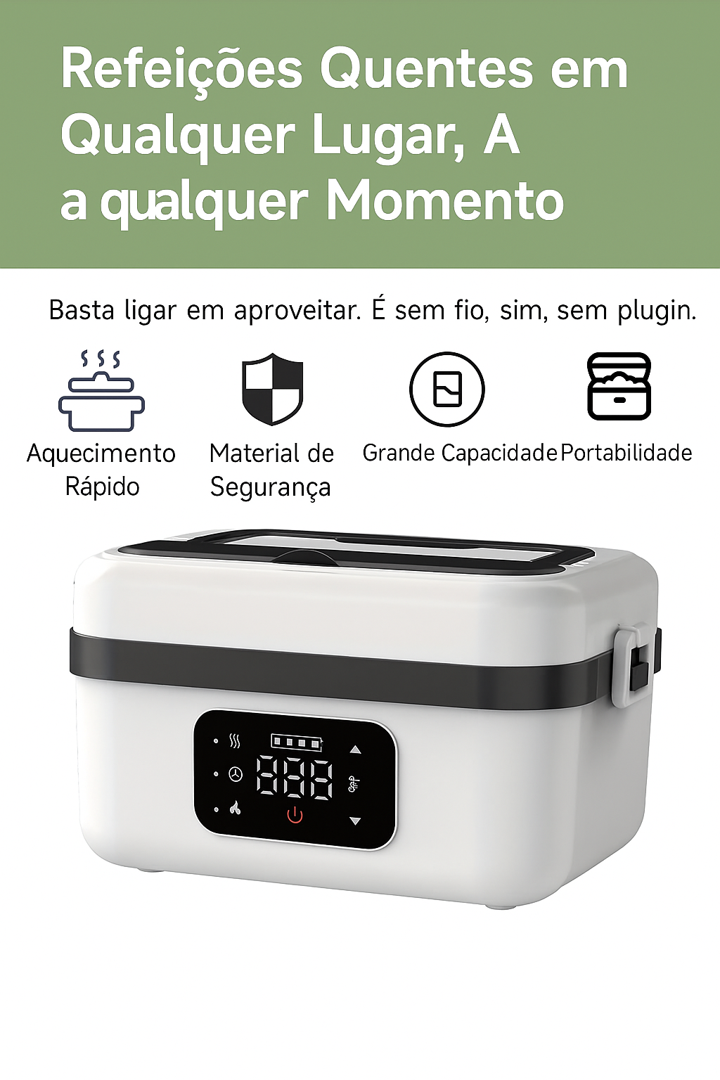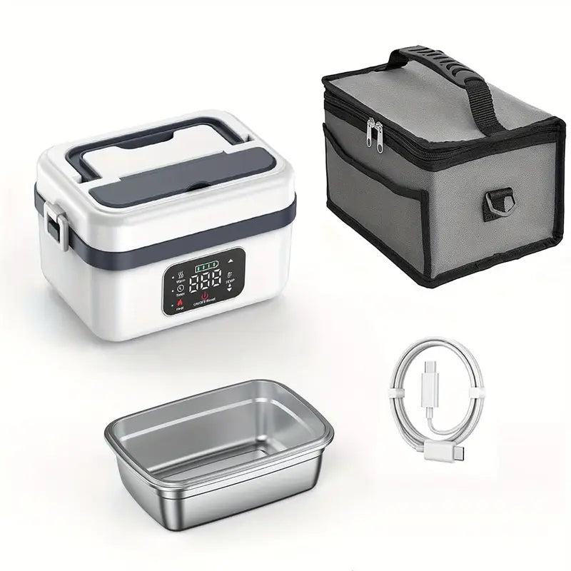 Caixa de Almoço Elétrica Portátil com Isolamento Térmico - Aquecimento Rápido , Recipiente à Prova de Vazamentos em Aço Inoxidável ), Bateria de Lítio Integrada, Sem Necessidade de Água, Ideal para Escritório, Escola e Viagens