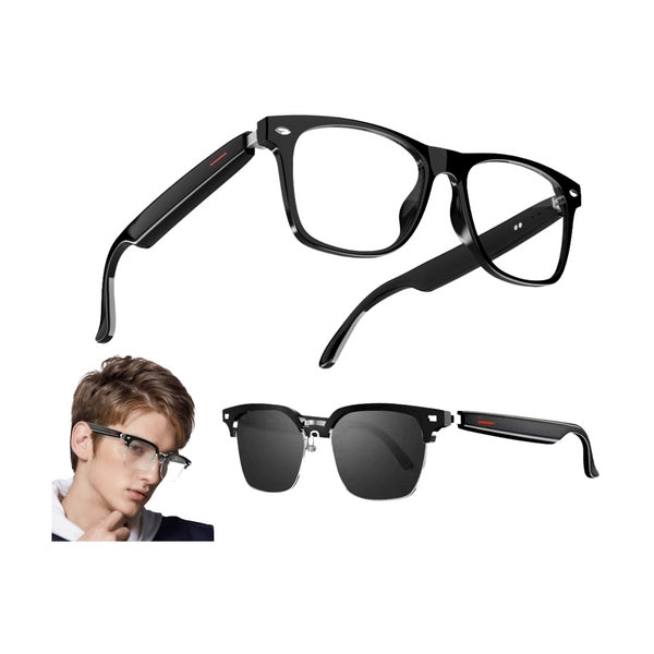 Óculos Smart 2 em 1 Bluetooth 5.0 com fones integrados, microfone com redução de ruído e proteção IP65. Estilo moderno com conectividade sem fio para chamadas e música. Disponível na BR Metaverso!