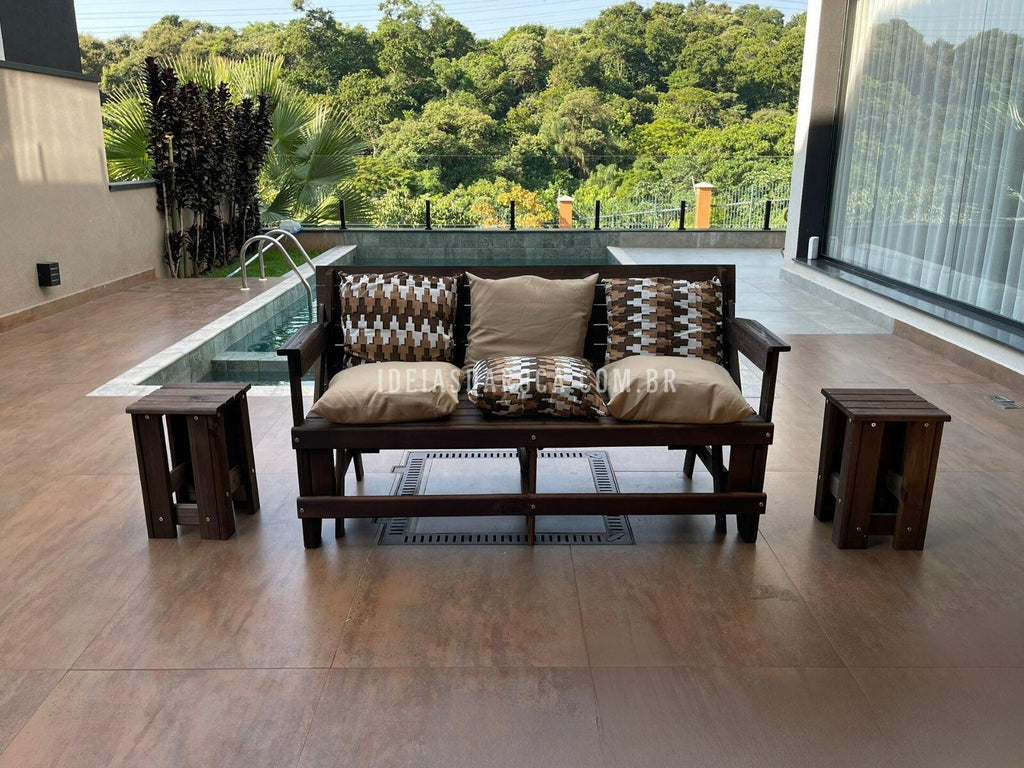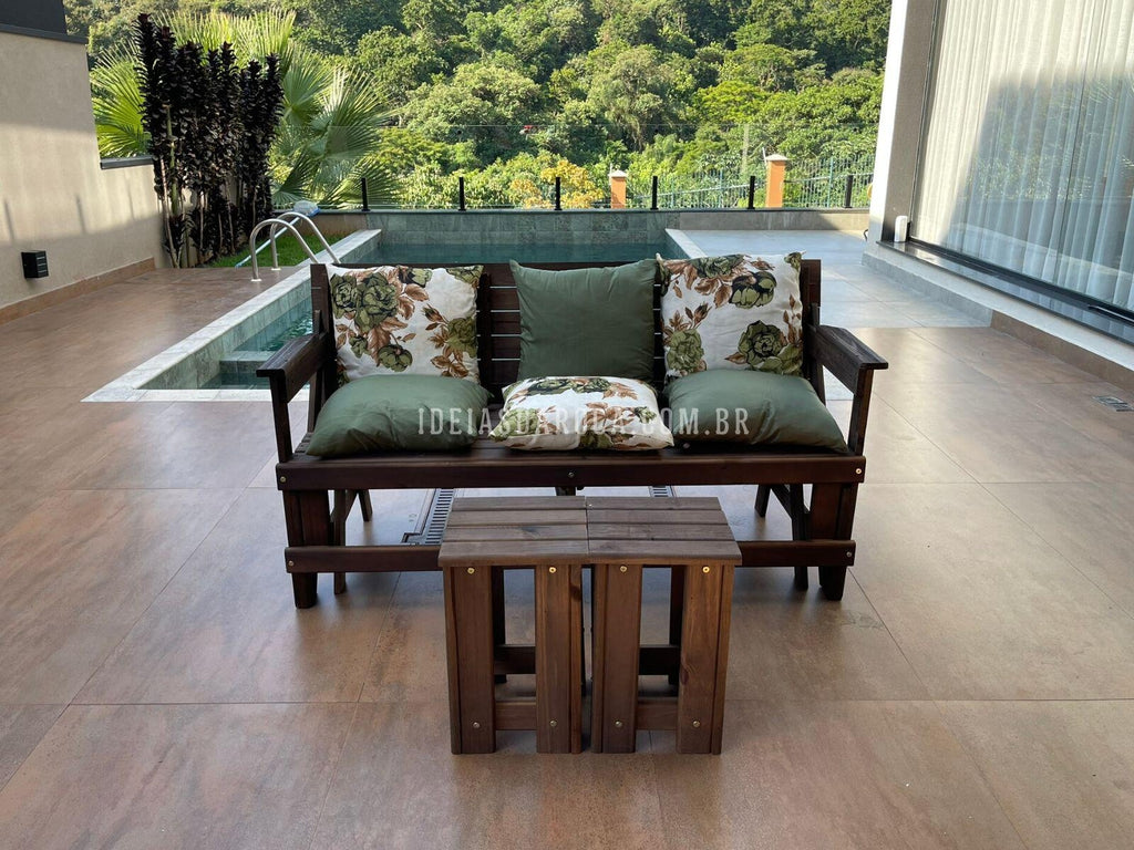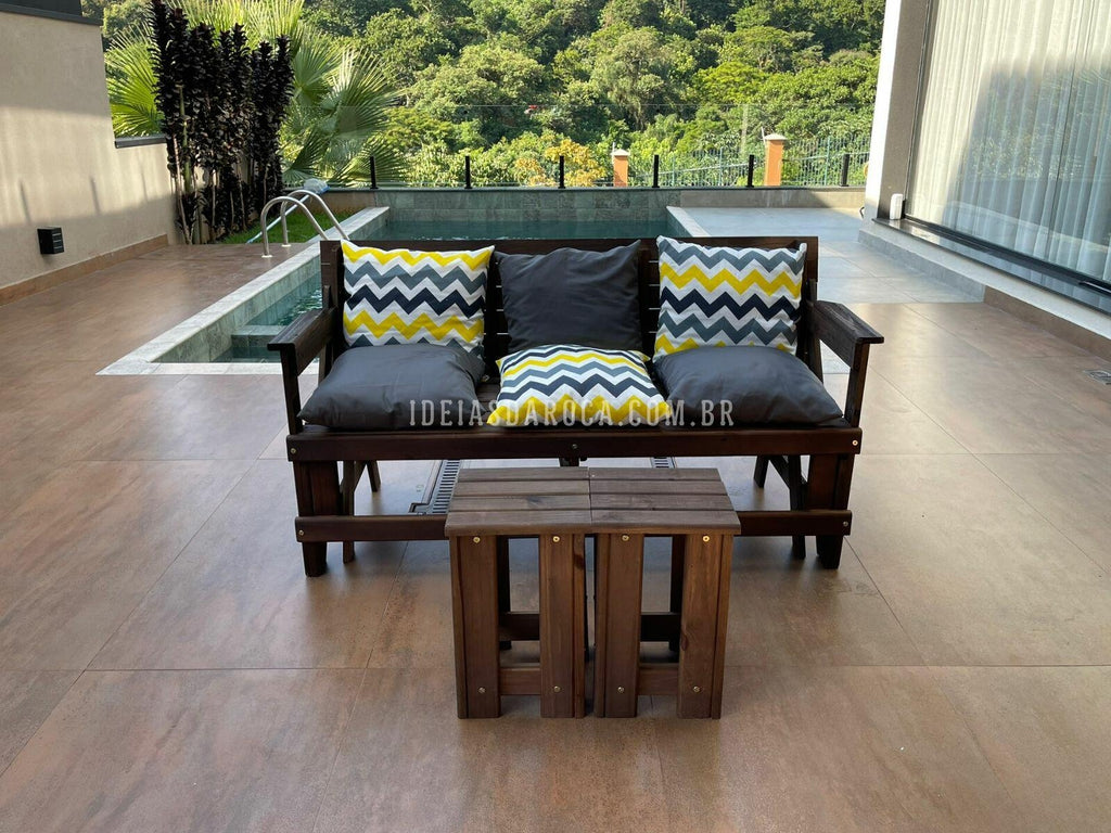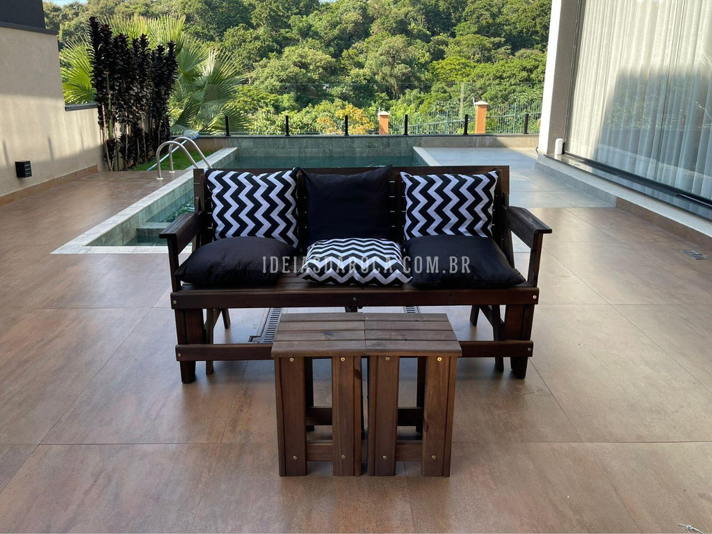 Combo Banco Que Vira Mesa 6 lugares + 2 mesas de centro + 6 almofadas.