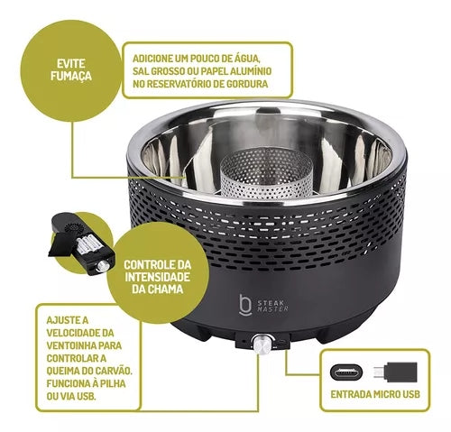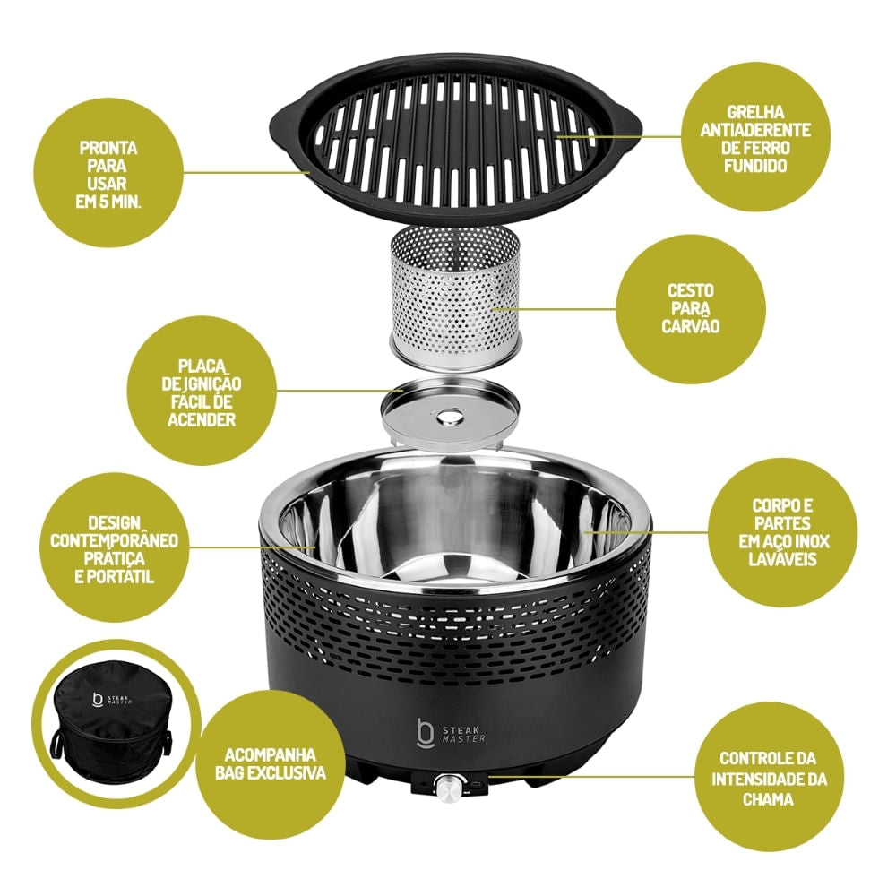 A linha Smoke & Fire Biscuitt foi especialmente desenhada para tornar sua experiência de um bom churrasco inesquecível, por isso, a Churrasqueira Portátil Steak Master tem design contemporâneo e com funcionalidades que vão tornar o churrasquinho de domingo um evento saboroso e cheio de aroma, seja ao ar livre ou dentro de casa.