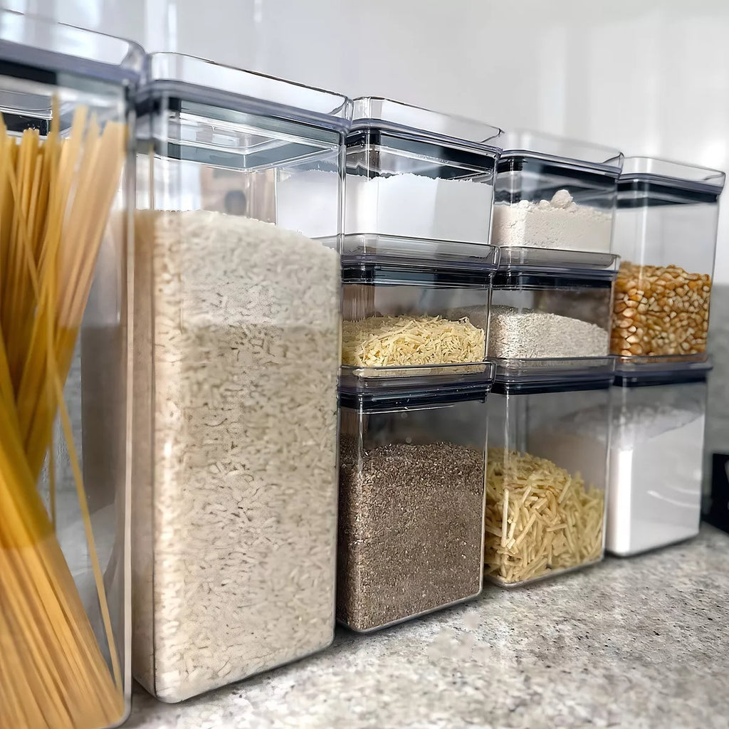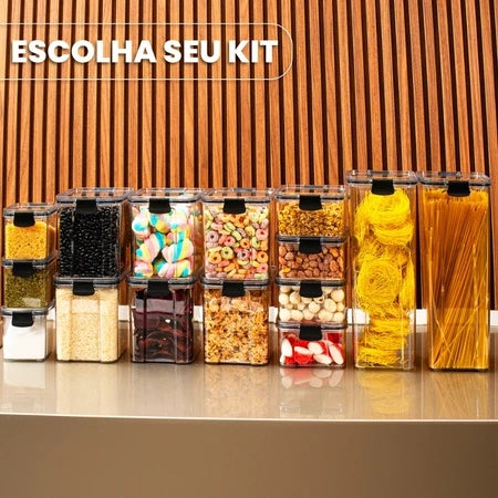 Compatíveis com prateleiras e organizadores padrão, estes potes são versáteis e se encaixam perfeitamente em qualquer cozinha.