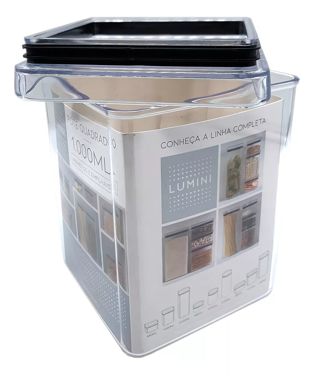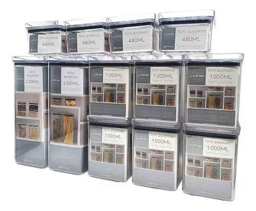 12 POTES QUADRADO DE ACRÍLICO 1 LITRO COM TAMPA HERMÉTICA